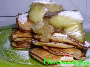 Блинчики переслоить яблоками.