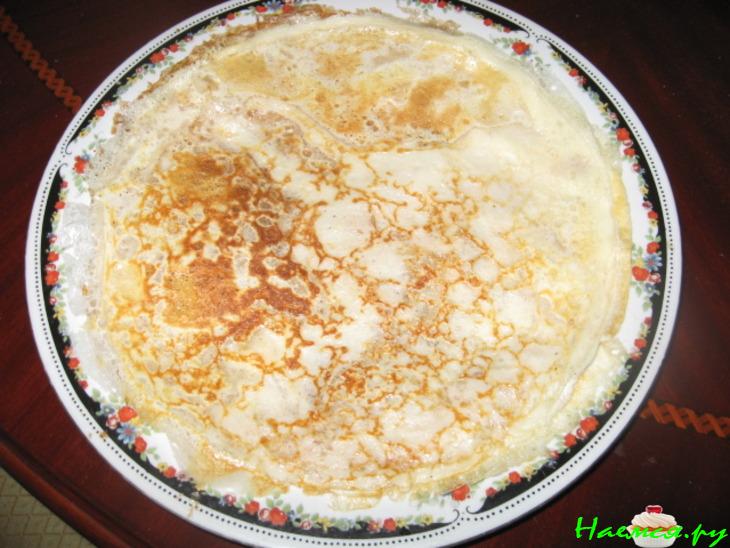 Блинчики получаются очень тоненькие и кружевные. Готовый блин кладем на тарелку и накрываем крышкой. Приятного аппетита.