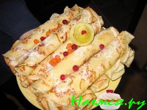 Готовые блинчики можно посыпать сахарной пудрой, можно подать с вареньем (очень вкусно с малиновым), сметаной или молочным кремом (например "Пискарёвским")