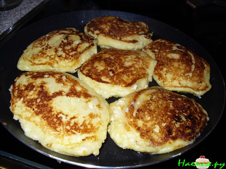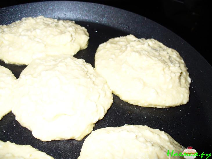 на разогретую сковороду выкладываем ложкой порцию теста