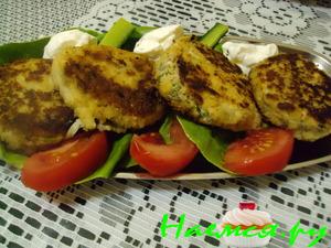 В сковороде разогреть столовую ложку масла.Овощную массу выложить ложкой и жарить на среднем огне по 4 минуты с каждой стороны.