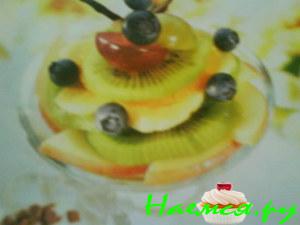 нектарин нарезать кусочками (0,5 мм.толщиной),равные доли уложить на дно 2 креманок.