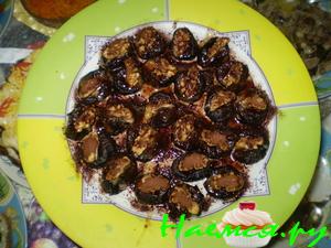 Соединяем сгущенку с черносливом и даем настояться в холодильнике 2 часа.