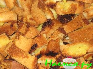 Апельсин почистить, разделить на дольки, каждую дольку очистить от тоненькой кожецы и украсить сухарики. Еще проще если вы воспользуетесь консервированными мандаринами.