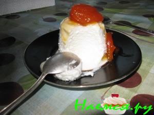 Сырную массу постепенно по 1 столовой ложкe ложить в сироп.