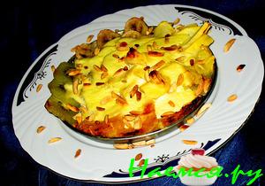 Фрукты положить в огнеупорную посуду и залить полученным сиропом. Поставить в хорошо разогретую духовку на 8-10 мин (фрукты должны только нагреться и пропитаться сиропом, но не размягчиться)!