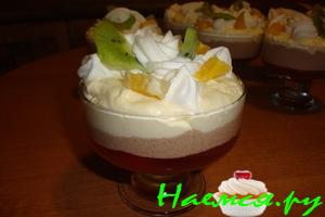 Украсить оставшимися кусочками фруктов и кокосовой стружкой.Поставить в холод на 20-30 мин.