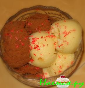 Желтки с сахаром взбить в белую массу(сахар полностью не раствориться).