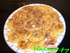 Обвалять в крахмале и обжарить в большом количестве масла в течение 2-3мин.