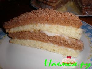- Замешиваете тесто. Разделяете его на две одинаковые части, в одну из которых добавляете какао. Ставите запекать в формочки диаметром 23 -25 см. Соблюдаете температурный режим - 190 градусов.
