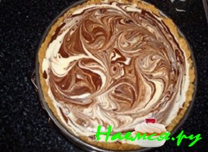 После достать выпечку из духовки и дать остыть. Украсить чизкейк топленым шоколадом и отправить его в холодильник на всю ночь.