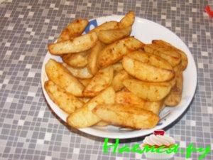 На противень налить масло растительное, уложить картошку срезом вниз, поставить в разогретую духовку