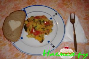 Сначала обжарить лук, добавить морковь, перец, цв. капусту, кабачки. И в самом конце помидоры. Блюдо посолить, поперчить и тушить на слабом огне около30-40 мин.