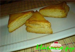Раскатываем одну часть теста(как можно тоньше),смазываем обильно маргарином(также одной частью),закатываем на скалку(при этом немного растягивая),и разрезать ножом вдоль по скалке.Сложить края к средине ,чтобы получился квадрат.Завернуть в плёнку,дать немного остыть в холодильнике(3-4 часа).Затем использовать по назначению.Можно замораживать,и использовать как магазинное(разморозить до комнатной температуры)