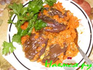 баклажаны попечь или отварить.положить под пресс на 6 часов .вырезать конусом середину.пастернак отварить2мин.моркловь10мин.чеснок нарезать в 2 -3спичичные головки.пастерна и моркрвь соломкой.все перемешать и нафоршировать баклажаны.под пресс на 2-4 дня чтобы закисли.затем в холод.