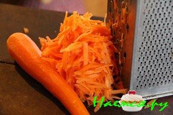 Морковь очистить и натереть на крупной тёрке, залить растительным маслом и тушить 20 минут.
