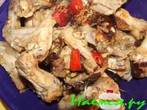 У меня крылышки были. А если у вас будет курица - то ее надо будет достать и порезать на кусочки.