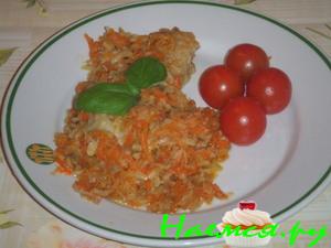 Лук поджарить с чесноком, томатной пастой, залить бульоном, положить готовые фрикадельки из духовки. Проварить немного, положить нарезанные полосками цуккини, потом горошек.