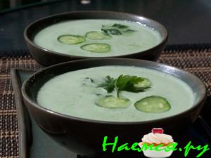 Оставшиеся пол огурца порезать и положить в тарелку,и залить получившимся супом.Всё суп за 5 минут готов.