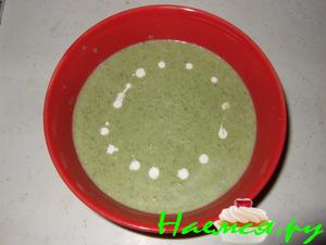 На сливочном масле обжарить лук до соломенного цвета. Бульон процедить и отставить. Овощи вместе с луком пюрировать в блендере. Затем ввести пюре в бульон, добавить молоко или сливки и варить на медленном огне 10 мин.Добавить соль, перец, я люблю добавлять немного молотого карри и мускатного ореха.