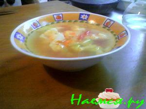 В кастрюлю наливаем воду (3 литра),засыпаем картошку и цветную капусту и варим до готовности.Добавляем жареные баклажаны,зажарку,солим,перчим,ложим лаврушку.Даем прокипеть 2-3 минуты,бросаем мелко нарезаную зелень петрушки и снимаем с огня.
