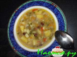 Теперь всё это припускаем до желаемой кондиции. Забегая вперёд, готовя этот суп, вообще ни о чём не волнуйтесь, не отмеривайте точно, просто с удовольствием следуйте рецепту, не впадая в крайности, повинуйтесь своим вкусам и инстинктам, успех вам всё равно абсолютно гарантирован.