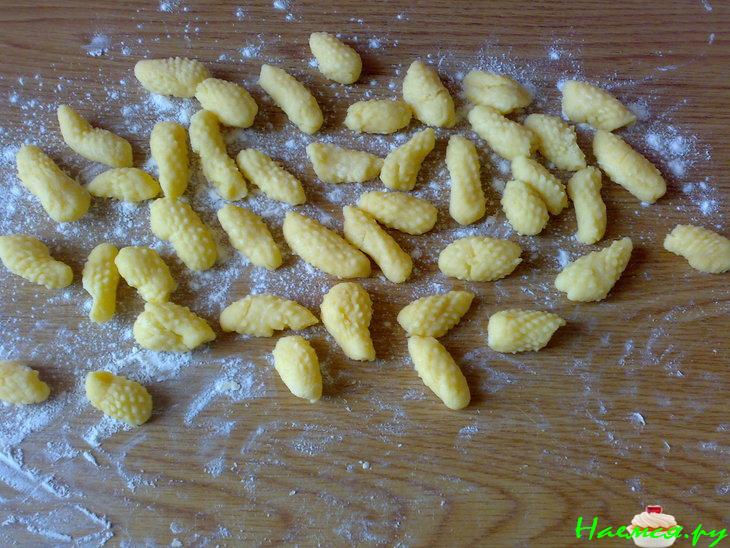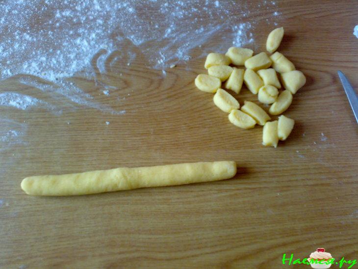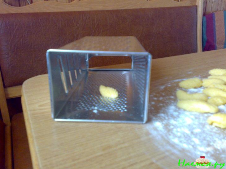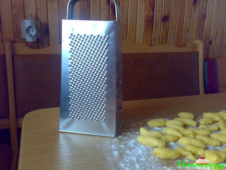 В кипящую воду кладем фасоль и варим ее 35-40 мин., а тем временем измельчаем лук, чеснок, режем нам удобными дольками картофель, для фрикаделек заправляем фарш - 3 дольки чеснока,1 яйцо,соль и перец по вкусу...И еще- изюминка-т.е.шишечки.А их мы готовим из сыра,1 яйца,2 ложек муки и перчика(черного молотого)...Весь фокус не в том,чтобы приготовить тесто для кнедлей, а в том, как их превратить в шишечки...Тут уж без практики не обойтись...Сыр трем на мелкой сырной терке,добавляем к нему яйцо,муку и перец.Месим тесто и... Наберитесь терпения и попрактикуйтесь...Как видите на фото,тесто для наших будущих шышечек раскачиваем в трубочку,нарезаем ее на небольшие кусочки и вот теперь нам понадобиться терка,т.е.та ее часть,на которой трут морковь очень мелко(надеюсь на фото это видно-прошу прощения за качество фотографий-мобила).Берем каждый кусочек и проводим им по внутренней стороне терки нежно прижимая,чтобы наш кусочек под пальцем скрутился в трубочку из нутри,а снаружи останется след от внутренней стороны терки,т.е.небольшие бугорочки...
