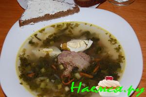 лаврушку и перчик горошком,остальную зелень и рубленые яйца.Мясо нарезаем на кусочки и кладем в супчик,огонь выключаем и даем настояться немного мин.20.