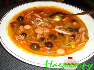 1) Надо из говядины или из языка сварить бульон, а лучше и из того и из другого соединить потом вместе.