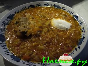 Последний день отпуска. Я на сайте. Читаю рецепты, ставлю оценки. Как обычно волна аппетита начинает накатывать. Вспоминаю, что первое блюдо отсутствует (как никак праздник был). И вот решил приготовить капустняк. Тем более от запеченного пелингаса осталась квашеная капуста. Не знаю кто и как его готовит. Но у нас в семье делаем так.