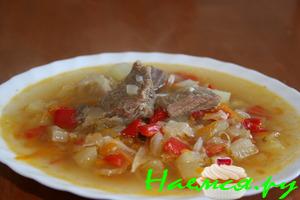 Вскипятить в кастрюле воду,положить лук с салом,добавить пшено(воду слить) и довести до кипения.Добавить картофель,лавровый лист,посолить и поперчить,довести до кипения и убавив огонь варить 15-20 мин.