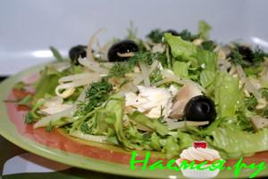 Листья салата разложить по тарелкам, сверху произвольно разложить ломтики яиц, перца и рыбы.