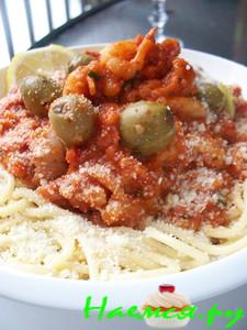 Добавить соус с креветками и хорошо перемешать двумя ложками...