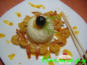 Креветки гриль в восточном стиле, а на гарнир вегетарианский вариант фунчозы