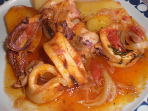 истим кальмары, удаляем оболочку, и "хрящик" и режим кальмары кусочками.