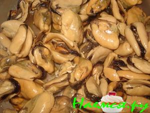 разогреть до кипения 1 литр подсолнечного масла и прокипятить в нем 8!минут мидии.постоянно помешивая.