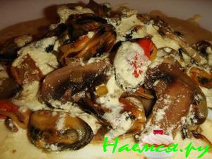 Мидии в соево-кунжутном соусе