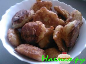 На раскалённую сковороду выкладывать плоскими лепёшечками, жарить на среднем огне до румяного вида. После переворачивания на другую сторону накрываю крышкой.