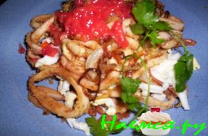 ---1.тушку кальмара 3 минуты варить в кипящей соленой воде,охладить