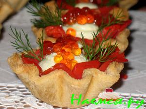 Постные башенки с кремом из авокадо, горбуши и оливок