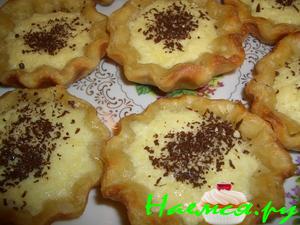 Размораживаем готовое слоеное тесто,раскатываем,с помощью стакана вырезаем кружочки.В формочках формируем из теста корзиночки.И выпекаем их в разогретой духовке.Пока наши корзиночки запекаются,мы готовим начинку.Для этого берем замороженный шпинат и размораживаем его на сковороде со сливочным маслом ,под крышкой.