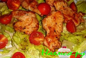Положить помидоры на листья салата и поставить охладиться на час-два в холодильник