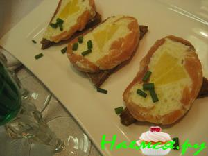 100 гр лосося, креветки, масло, растворенное на водяной бане, сливки, табаско, смешать в блендере до однородной массы.
