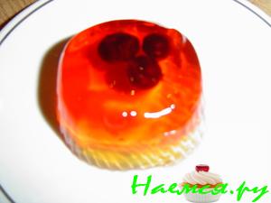 яблока, лука и винограда сливаем остатки маринада и опускаем их в чуть остывшее желе, стараемся с помощью ложки равномерно распределить. Когда желе остынет до комнатной температуры, убрать в холодильник. Желательно оставить на несколько часов после застывания, тогда нейтрализуется запах кальмаров. Желе лучше делать мягким.