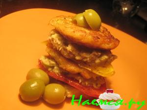 Выложить хлебными кружочками формочки для маффинов или тарталеток изнутри,хорошо прижать к стенкам