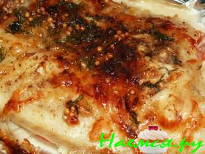 На следующий день сливаем уксусную смесь и делаем заливку - горчицу, сливки, масло, мед и укроп смешиваем и заливаем предварительно разрезанную рыбу. Перемешиваем и подаем.