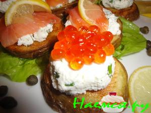 На отрезанный кусок огурца положить 1 пластину яйца,выдавить по кругу сыр филадельфия и заполнить икрой.
