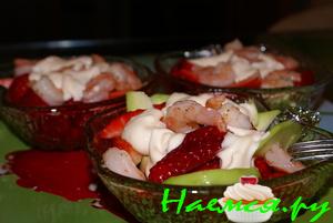Салат с авокадо, помидором и креветками