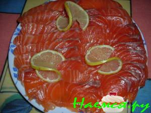 В ёмкости соединить все специи и перемешать.Затем каждый кусок рыбы со всех сторон натираем этой смесью. В стекляную ёмкость на дно посыпаем немного нашей смеси, кладём один кусок кожей на дно, сверху на него ложим другой. Пересыпаем оставшейся смесью специй,сверху придавливаем обычной тарелкой и закрываем крышкой. Ставим в холодильник на 36 часов +4гр.С. Через 1.5 дня достаём, аккуратно обчищаем ножом все специи и снимаем кожу(она очень легко снимается). Режим на кусочки, сбрызгиваем немного маслом( подсолн. или олив.) и раскладываем в две баночки.Одну можно в морозильник, хранится долго, а другую к столу.