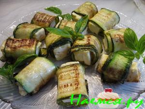 абачок разрезать вдоль на пластинки, посолить, поперчить, обвалять их в муке и обжарить до золотистого цвета. Филе нарезать брусочками посолить, поперчить, обвалять в муке и тоже обжарить. Выложить всё на салфетку, чтобы удалить излишки масла. Сыр натереть на мелкой терке, зелень мелко покрошить. На край кабачковой пластинки положить брусочек рыбки, посыпать сыром и зеленью, и свернуть рулетиком. Готовые рулетики выложить в огнеупорную посуду и в микроволновку на 3 мин для расплавления сыра. Хорошо остудить.